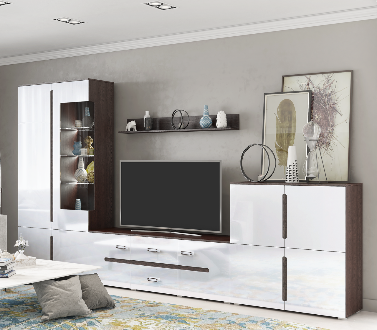 Гостиная "Ким-1" (белый глянец/венге) Миф